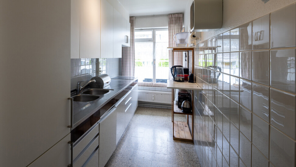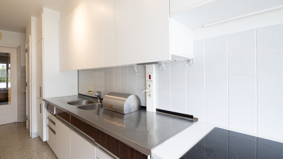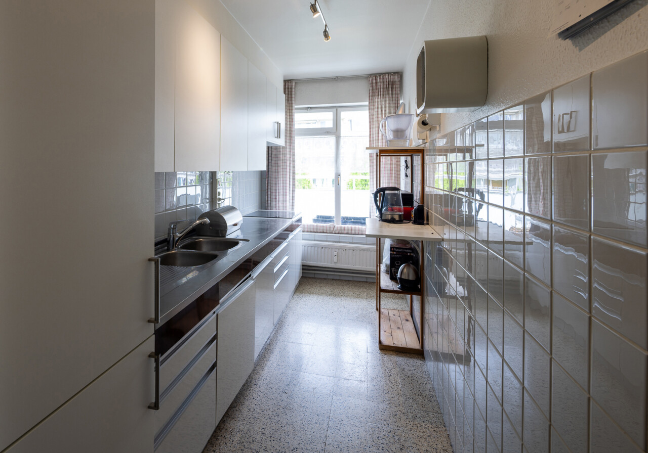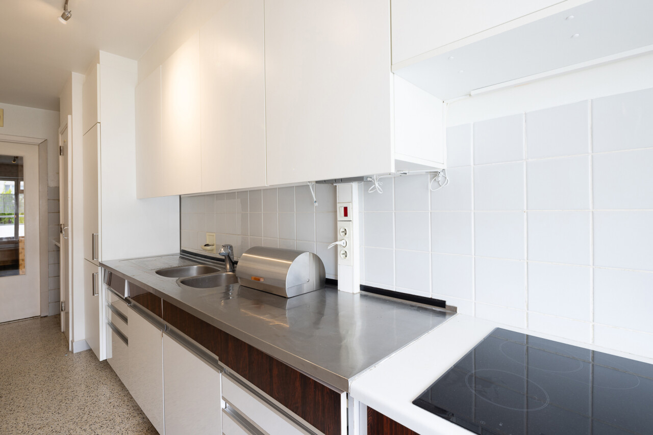 De keuken biedt een praktische ruimte voor culinaire activiteiten, met uitzicht op één van de twee terrassen.