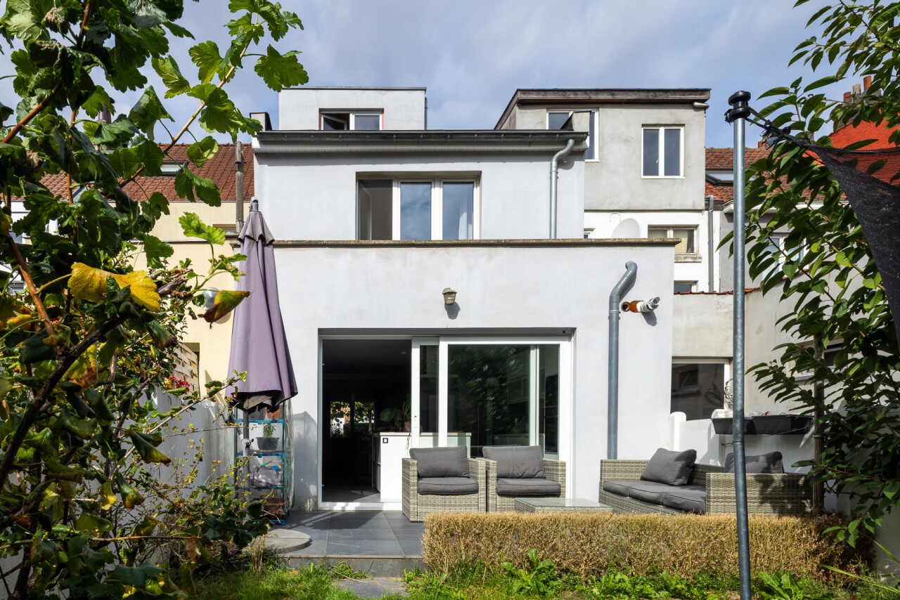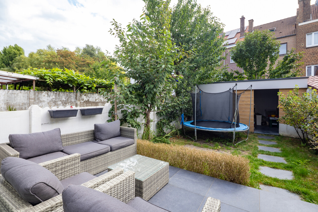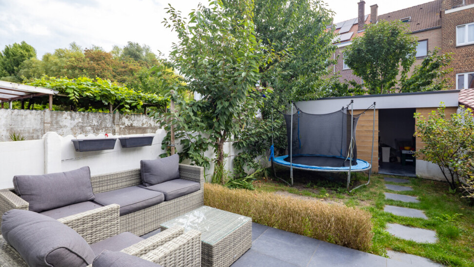 Achteraan de woning nodigt het zonnige terras je uit om tot rust te komen. De tuin met praktisch tuinhuis vormt de perfecte plek voor lange zomeravonden of een speelse namiddag voor de kinderen.
